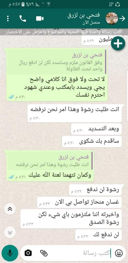 ثم قام بتلفيق التهم للعامل مستخدما خبرته الرخيصة ضد من هو اضعف منه على أنه طلب منهم رشوة وقام بتصوير العماره