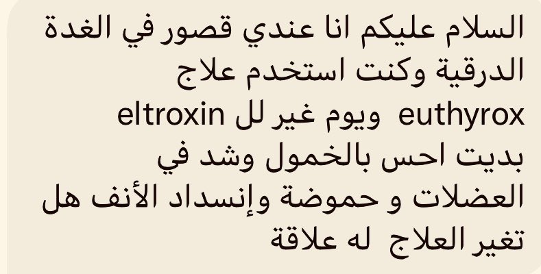 بعض المرضى يلاحظون فرق عند تغيير العلاج لذلك يُنصح بعمل تحليل وظائف الغدة الدرقية بعد⬅️٦ أسابيع من تغيير العلاج.