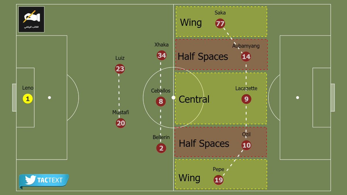 بالعودة لبدايته مع #أرسنال، والاعتماد على الرسم 1-3-2-4 والتحوّل عند استلام الكرة إلى 5-3-2 بدخول الظهير الأيمن لوسط الملعب