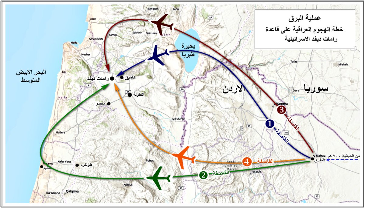 وبالمقابل فتحت القاصفةنيران(رشاشاتها)على القاعدةثم واجهت(دوريةالميراج)لتصيبهابصاروخ لتسقط غرب(Afula)بقاعدة(عاموسAmos Camp)العسكريةولتقتل14جندي(بسبب وقودها)و2جندي(لقنبلةغير منفجرةفيها)
