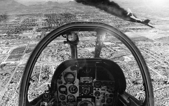 ثم واجهت القاصفة(دوريةالميراج)كانت راجعة للقاعدةلنقص في وقودها(فهبطت احدى طائرتي الدورية)والأخرى اصابت القاصفةبصاروخ لتسقط