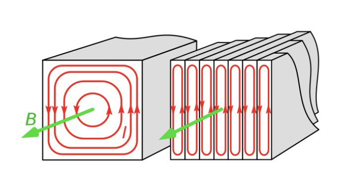 بجانب قدرة القلب الحديدي على تمرير الفيض المغناطيسي، فإنها تستطيع أيضا توليد تيار بداخلها والتي تسمى بالتيارات الدوامية.