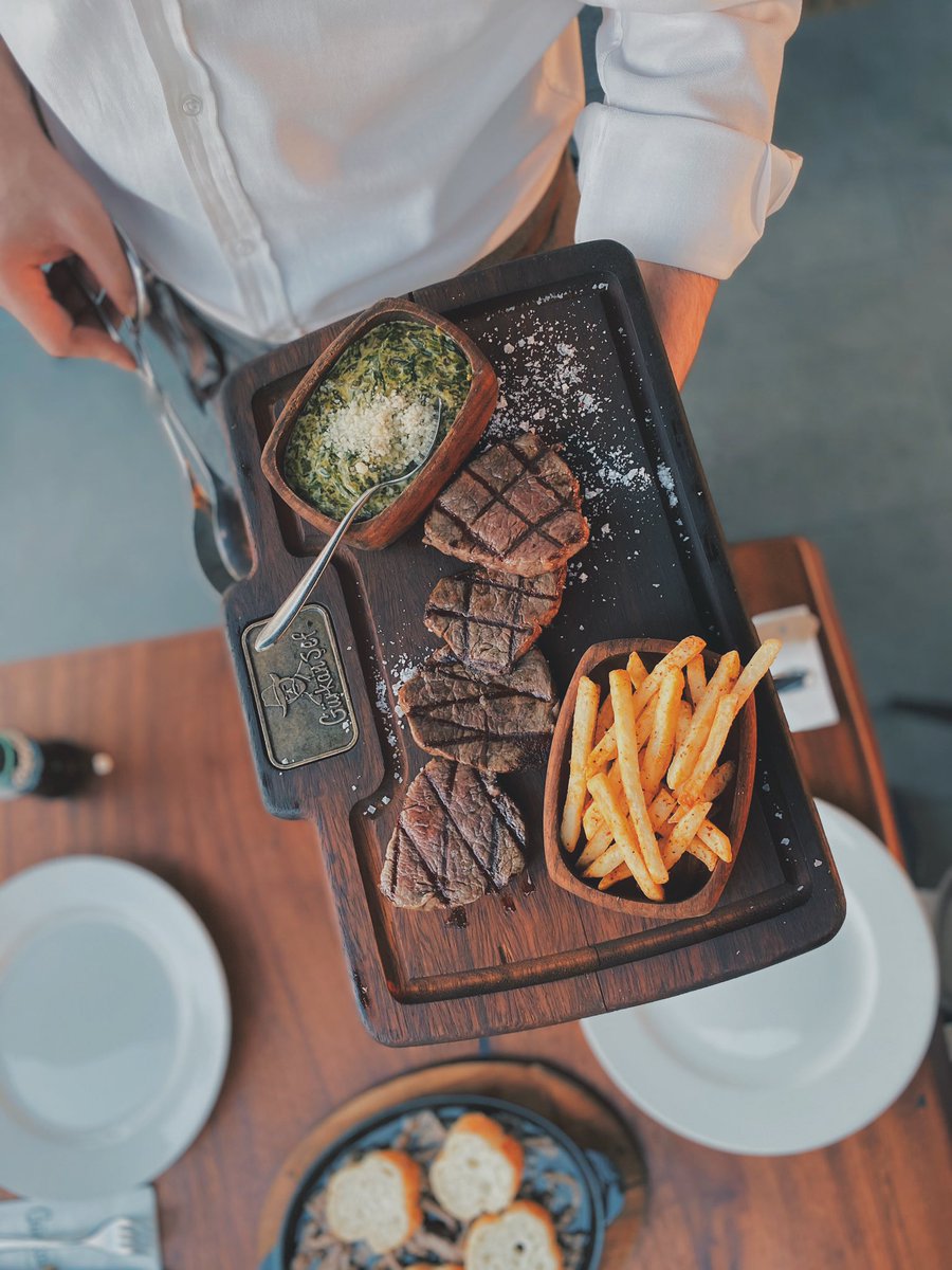 يقدم اللحوم والبحريات والسلطات 🥘🥗