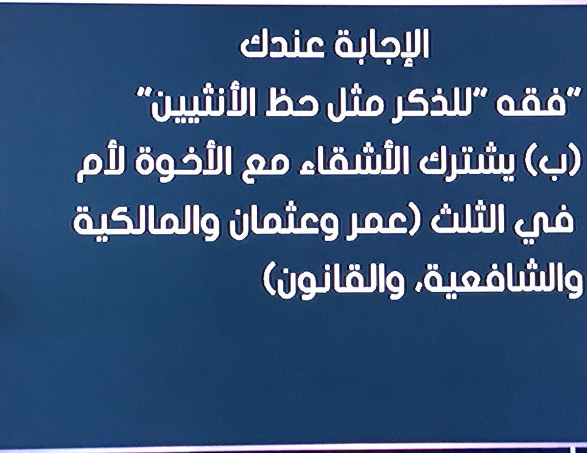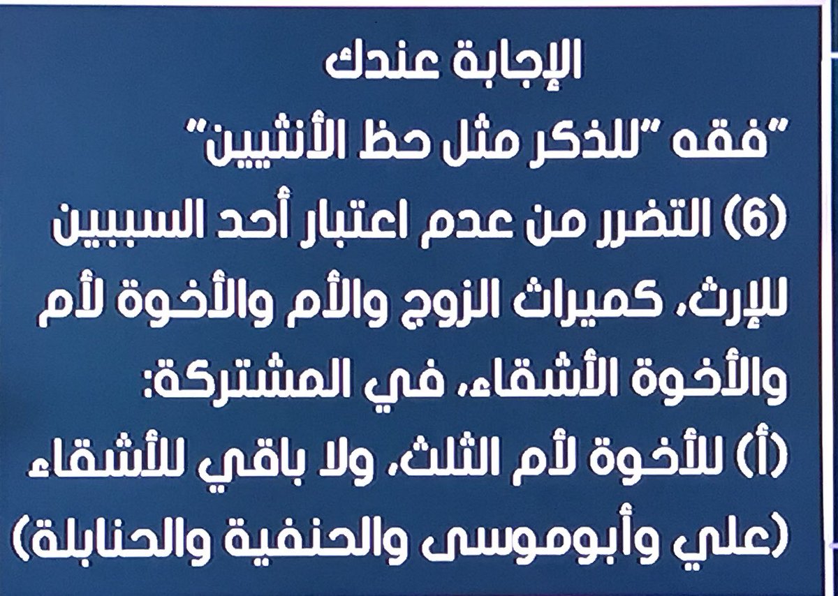 المسالةالحجريةاو المشتركةتوفيت زوجة وتركت زوج وام واخوةلام واخوة اشقاء..الزوج النصف والام السدس واخوة لام لهم الثلث وانتهت التركةوالاخوةاشقاء منعوالعدم وجودباقي..اشتكوالعمرفهم اخوةمن ام واب ولايرثواواشقاءلام فقط يرثوا..اجتهدعمروورثهم مثل الاخوةلام