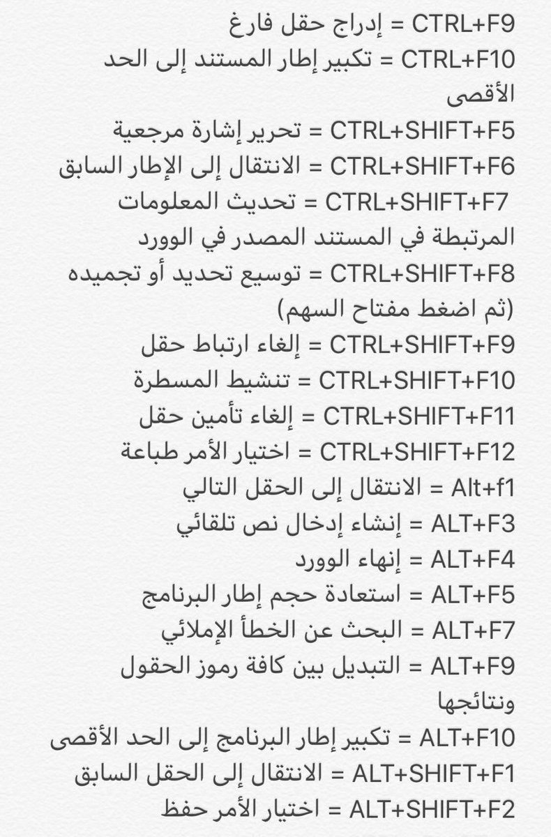كلنا نستخدم برنامج الوورد سويت بحث وجمعت الأختصارات اللي راح تفيدك وانت تشتغل في برنامج الوورد وعشان ما أكثر التغريدات ويسهل حفظها حطيتها في صور احفظ الصوره عندك عشان تستفيد منها بعدين وشاركها مع أي شخص حاب يحفظ الأختصارات 🙏🏻👍❤️👏🏻