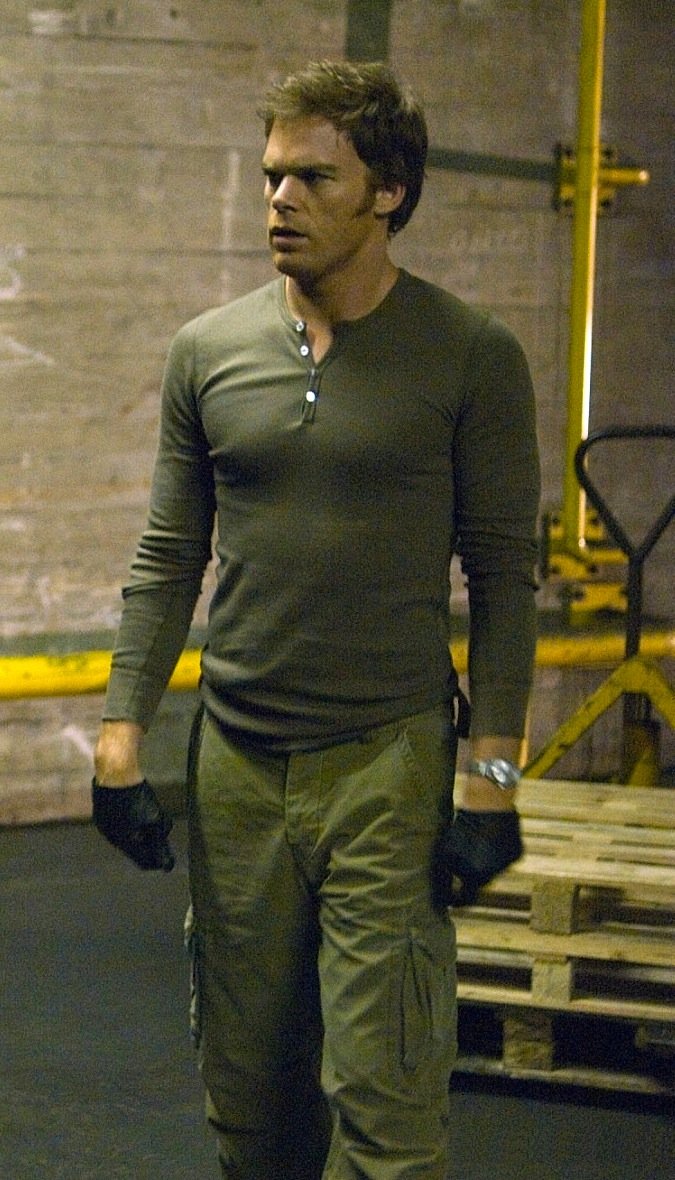 29- "ديكستر" دائما ما يرتدي أقمصة ذات ألوان فاتحة للعمل أو عند تجوله في أنحاء المدينة، لكنه يرتدي ثيابا سوداء وغامقة اللون لجرائمه.