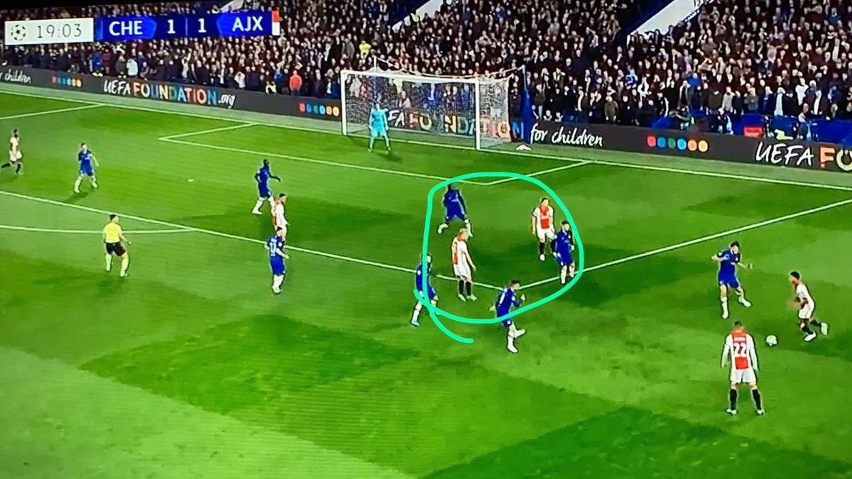 حكيم زياش يكون مربع وهمي [ قلبي دفاع امامهم لاعبي وسط ] في الجهة اليسرى، وفان دي بيك في الجهة اليمنى.