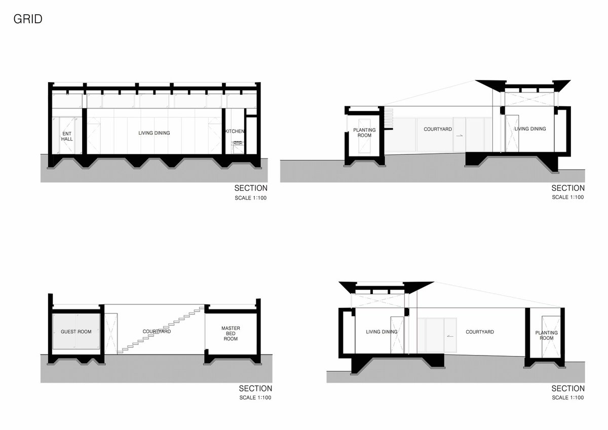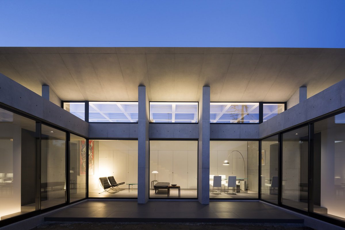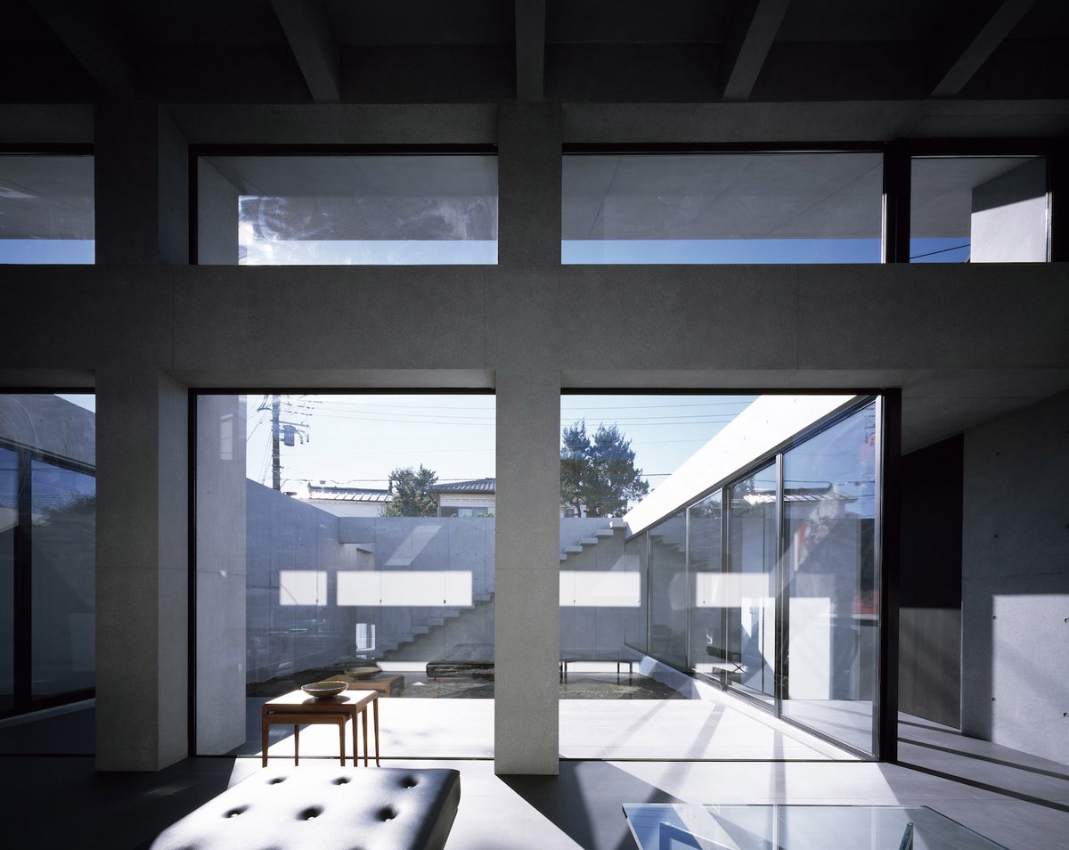 وعلى التكوين الداخلي يوجد اتصال بصري بين كل فراغات المنزل , فترى الفناء يربط بينها ويحقق وظيفته