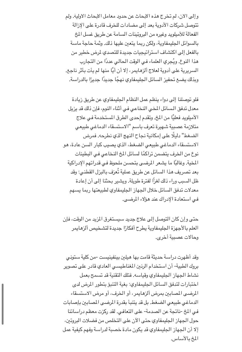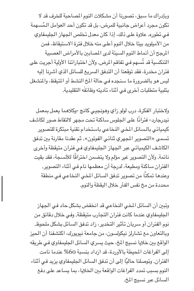 تتبعنا الآن مسارًا كاملًا داخل المخ تقطعه تلك السوائل التي تنظف المخلفات بفاعلية، وهو ما أسميناه