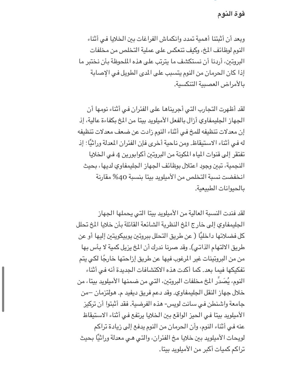 ومنذ خمس سنوات تقريبًا،بدأنا محاولة فهم كيفية تخلُّص المخ من البروتينات السامة والمخلفات الأخرى.