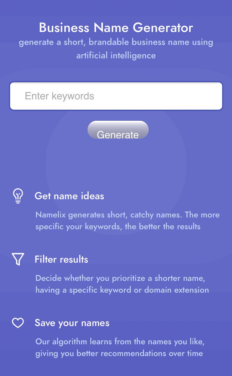 ما عليك سوى إدخال الكلمات الرئيسية لبدء إنشاء اقتراحات الأسماء.