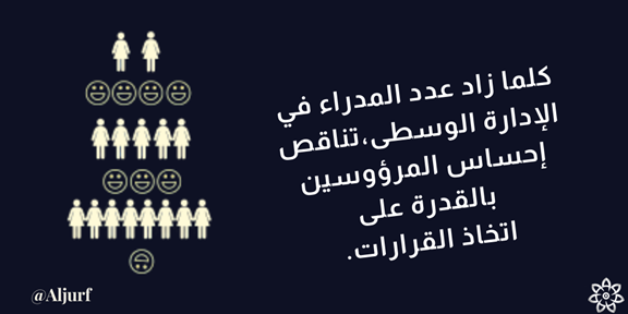 في المنظمات التي يتعدى فيها عدد المدراء في الإدارة الوسطى العدد المطلوب، تصبح الإدارة التفصيلية إحدى سماتهم. ولتبرير وجودهم، يلجأ المدراء لاتخاذ القرارات بدلا من مرؤوسيهم.