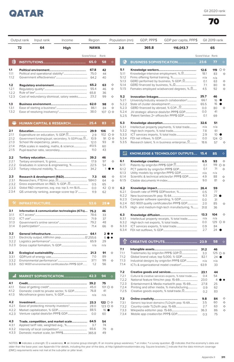 الأستثمار ١٢٢ عالمياً ! عدم وجود محافظ أستثمارية حيث شهدنا عدد صفقات ( صفر ) في قطر بينما مئات الملايين من الدولارات لدى جيراننا وآخرها ٣٨٠ مليون دولار لأنستاشوب في دبي ..