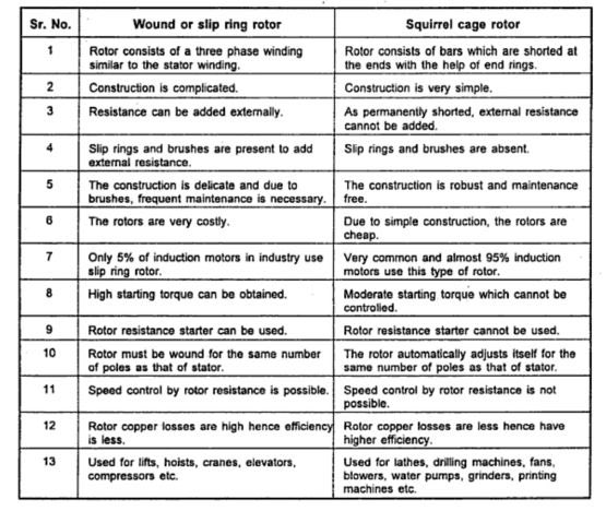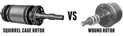 يوجد لدينا نوعين من المحرك الحثي ، أحدهما ذو القفص السنجابي Squirrel Cage ، والآخر ذو الحلقات الانزلاقية Slip Rings والذي يسمى أيضا بذو أسلاك ملفوفة Wound، يتشابهان ويختلفان في بعض الأمور، وسنذكر أهم التشابهات والاختلافات بينهما.
