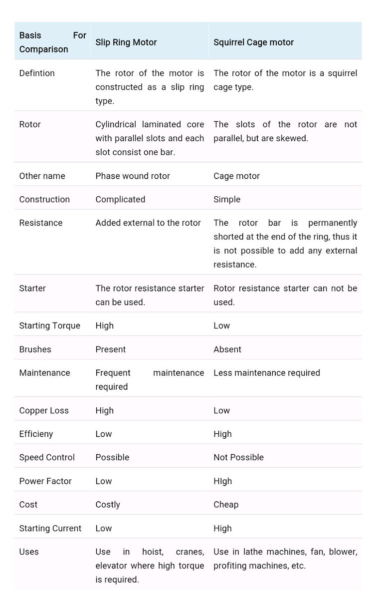 تقريبا هذه أبرز التشابهات بين المحرك ذو القفص السنجابي والمحرك ذو الحلقات الانزلاقية، والآن لننتقل إلى الاختلافات.