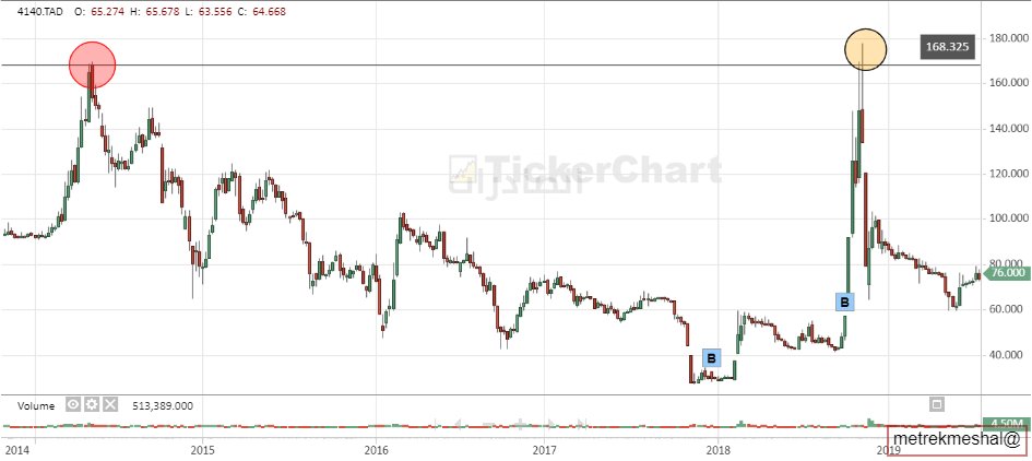 بعد عودة السهم لـ (مستوى الدعم) الذي هو قاع سابق اشترى السهم وأرتفع وحقق هنا مكاسب ضخمة