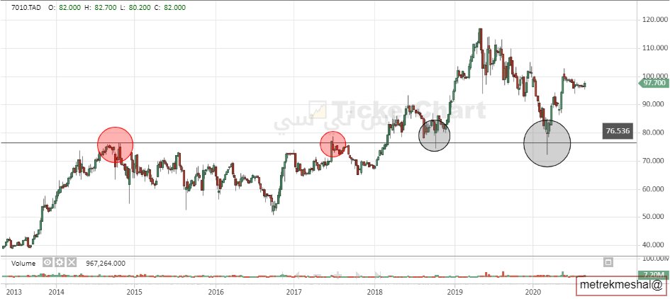 مثال على منطقة الدعم والمقاومة في رسم بياني واحد ولشركة واحدة في التغريدة القادمة :
