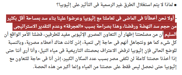 نعيد تذكير إخوتنا المصريين عند قيام السد العالي تعرض أهلنا لنكبة كبيرة. تم اقتلاعهم من أرضهم وإغراق مساحات كبيرة من أرضنا وحضارتنا لقيام السد العالي، حجز الزاوية لتنمية مصر في السبعينات. ماذا كان المقابل؟ لا شئ.
