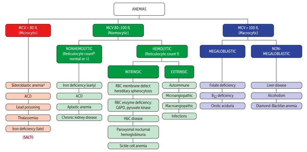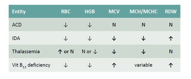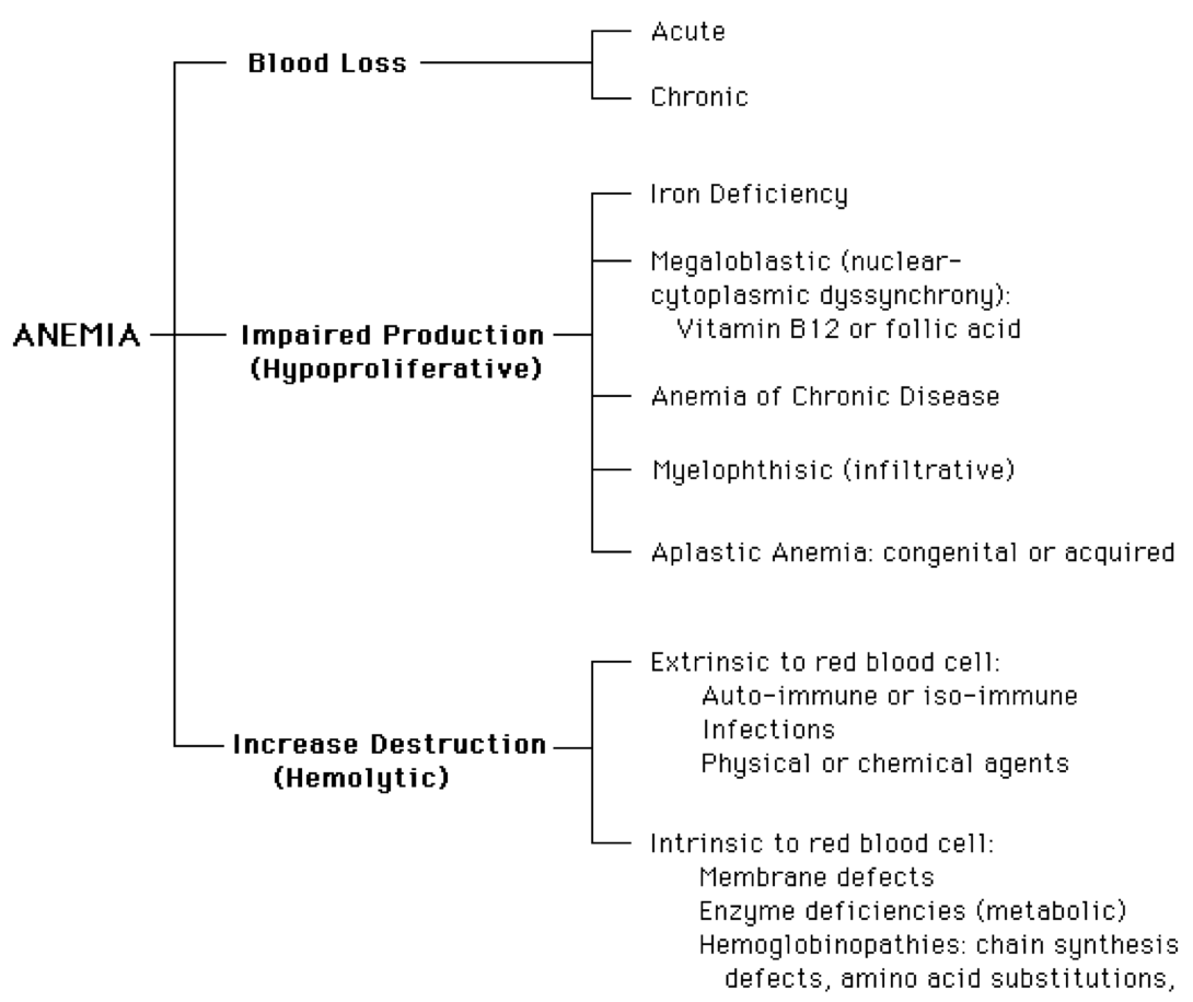 نقص مستوى الهيموقلوبين عن المستوى الطبيعي، بالتالي قد يشكوا المرضى من علامات وأعراض مثل ( الإرهاق، الصداع، عدم التركيز )