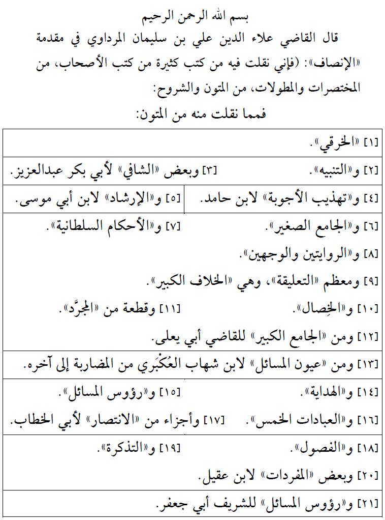 (التحديث الأول لقائمة الكتب التي اعتمدها المرداوي في الإنصاف)