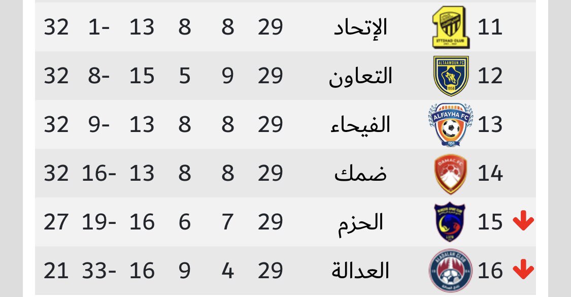 (مجموع النقاط = عدد المباريات +١) للبحث عن الأمان والبقاء في الدوري بحيث مثلاً إذا كان عدد مباريات الفريق هو (٣٨) مباراة فإن عدد النقاط التي يسعى لها الفريق هي (٣٩) نقطة للأمان🎯