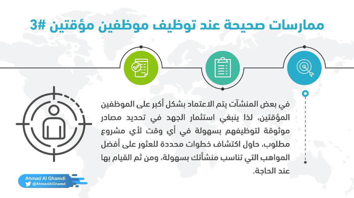 توجد العديد من المنشآت حالياً تسد الفجوات في المهارات الموجودة داخل فريقها الدائم بالاعتماد على بعض الموظفين المؤقتين، لذا في هذا الثريد أستعرض معكم بعض النصائح والممارسات الصحيحة التي ينبغي أن تقوم بها عند توظيف موظفين مؤقتين للقيام بمشروع أو مهام محددة