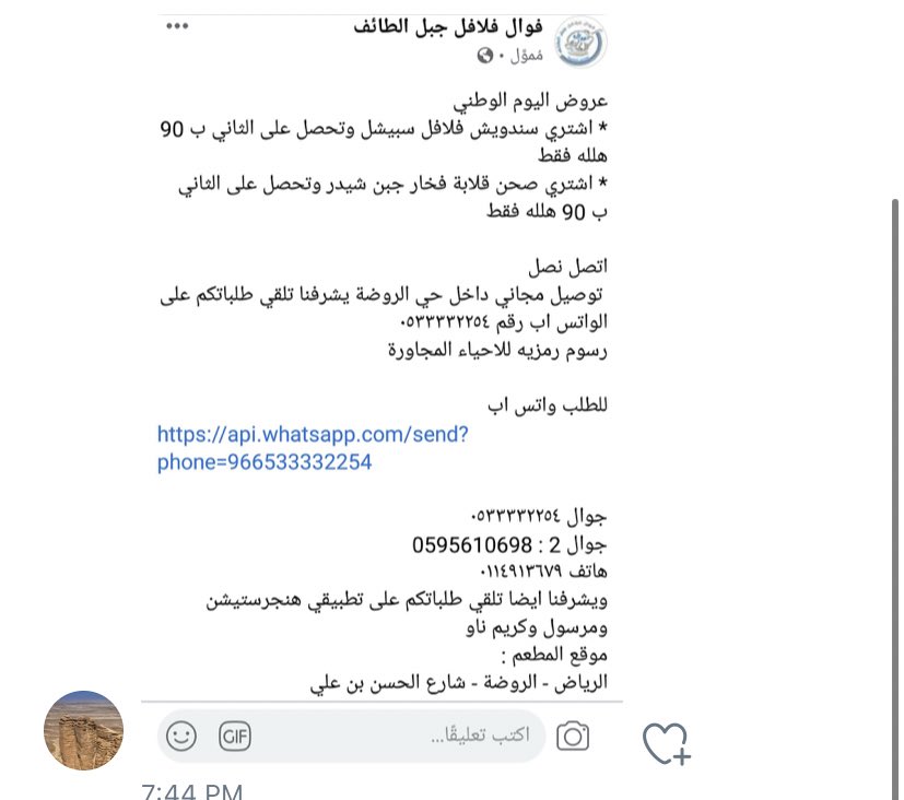 • اشتر فلافل والثانية بـ٩٠ هللة من فوال جبل الطائف بـ #الرياض بمناسبة اليوم الوطني