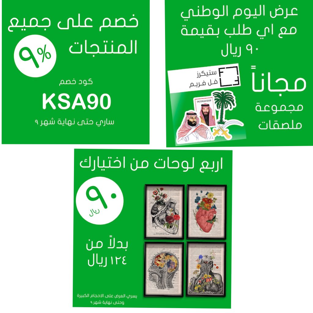 • أربع لوحات بـ٩٠﷼ مع مجموعة ملصقات مجانية وخصم ٩٪ عند استخدام كود ksa90 من متجر فل فريم @Full_frames