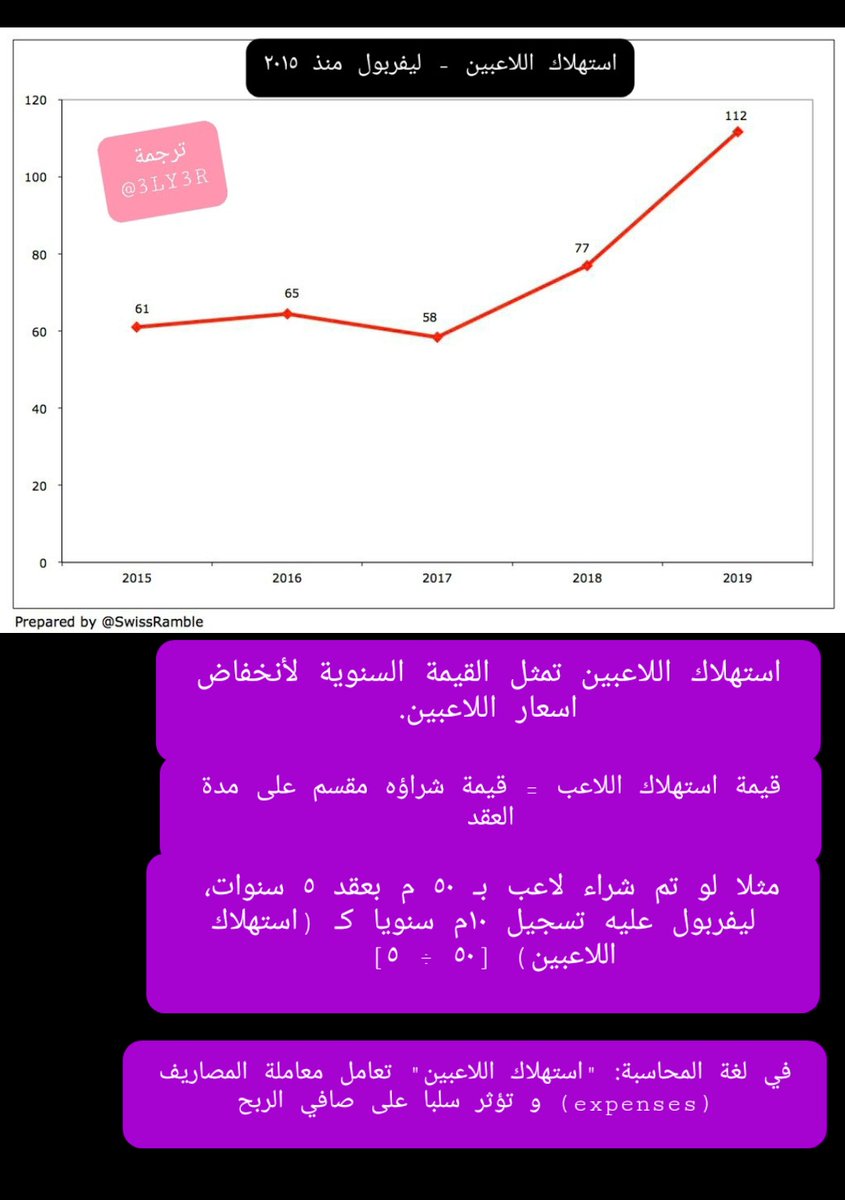 الاندية لاتقم بتسجيل قيمة انتقال اللاعب كاملة في سنة الشراء، انما تقوم بتجزئتها بالتساوي بناء على مدة عقده. القيمة المجزئة السنوية هذه تسمى "استهلاك اللاعبين" و تعامل معاملة المصاريف السنوية.