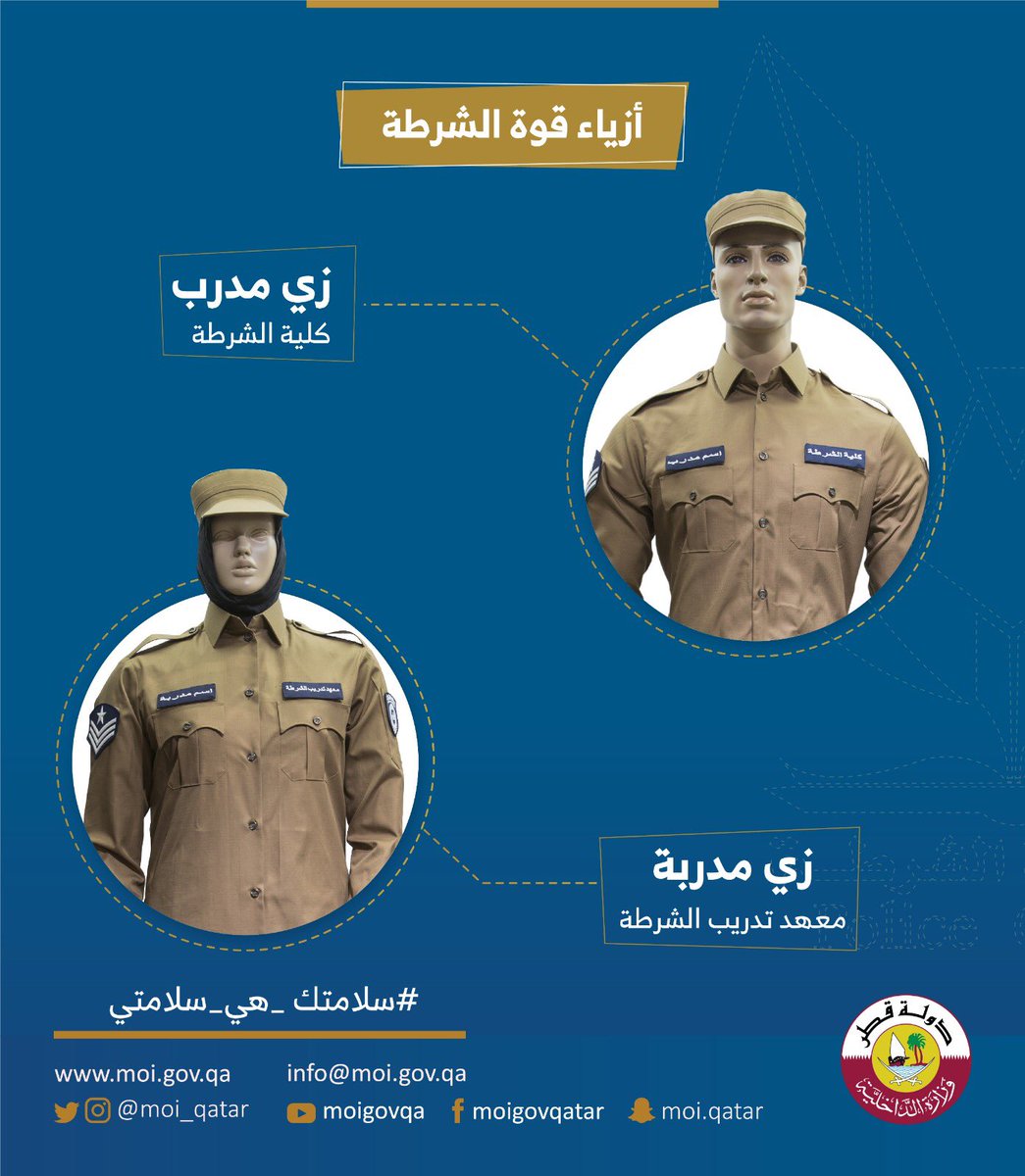 ويأتي اعتماد تجديد زي الشرطة استنادا إلى قرار معالي وزير الداخلية رقم (41) لسنة 2020 الصادر بتاريخ 16 / 7 / 2020 والخاص بتجديد زي قوة الشرطة، وتحديد شارات الرتب العسكرية للضباط والرتب الأخرى وأنواعها وكيفية ارتدائها #الداخلية_قطر