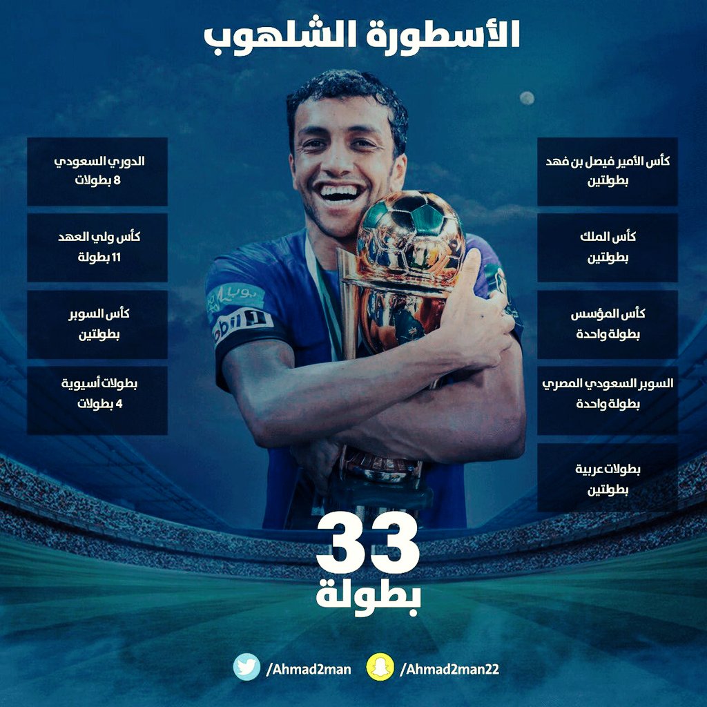 فقد حقق #الشلهوب مع الهلال الدوري وبطولة كأس ولي العهد وكأس خادم الحرمين الشريفين و كأس السوبر السعودي ودوري أبطال آسيا وكأس السوبر الآسيوي وكأس أبطال الكؤوس وكأس السوبر المصري السعودي وكأس المؤسس السعودي والبطولة العربية.