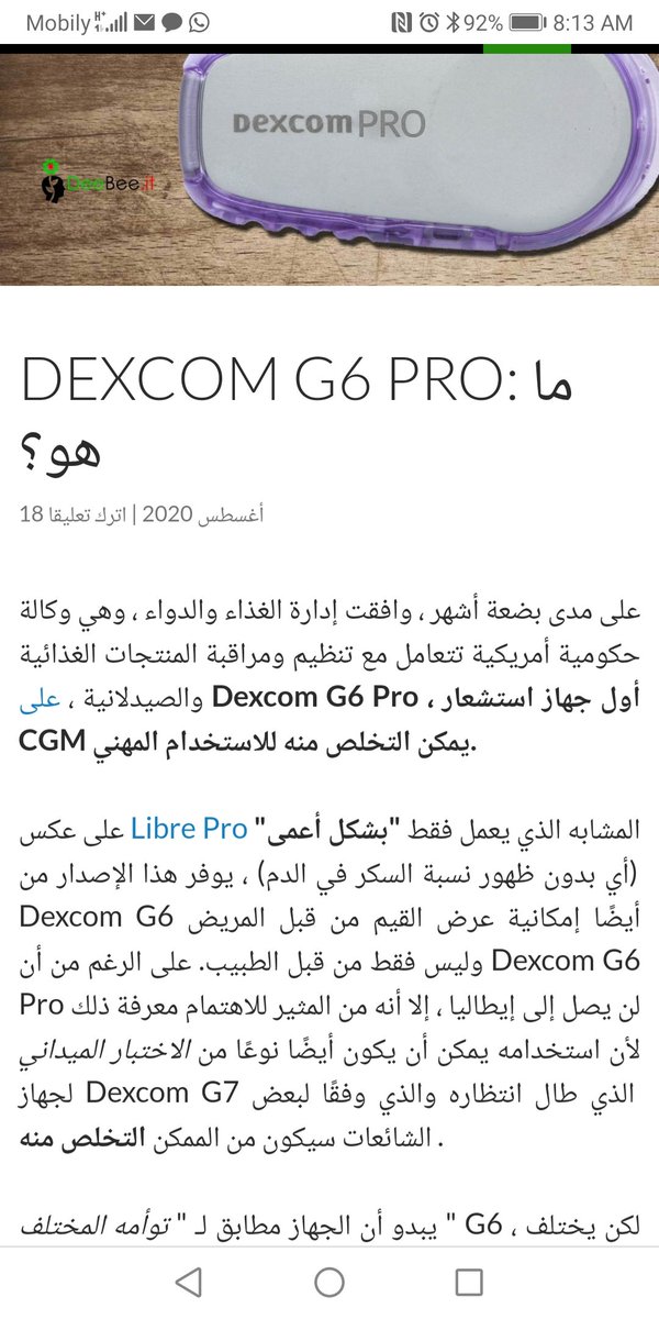 نبذة تعريفية عن جهاز ديكسيكوم ٦ برو dexcomg G6 Pro