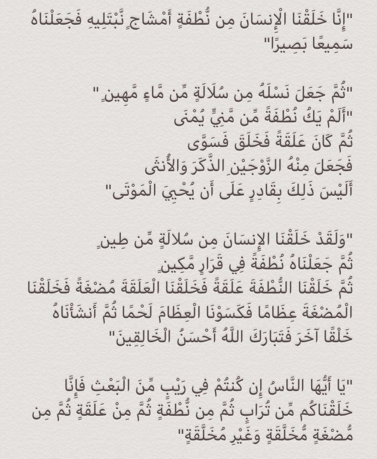 يُفهم من الأيات أن الجنين يتكون من جزء ضئيل من منى الرجل الذي يشارك نطفة المرأة عملية التكوين ، فهو جزء صغير مستخلص " سلالة " من ماء الرجل #عقلانيون 🔽