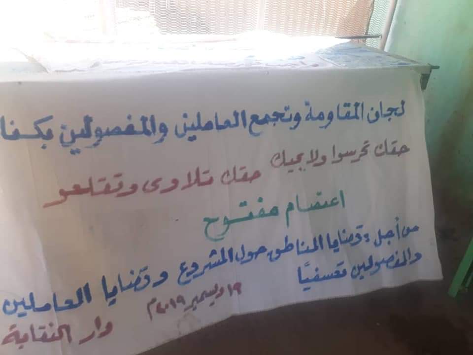 استمر نضال العمال ولجنة المفصولين وفي ديسمبر 2019 تم فض الموكب المطالب بعودة المفصولين بالقوة المفرطة واعتقال العديد في الصورة المهندسين الصادق عثمان ، امين رجب، وعمر النقي داخل الزنزانة. افرج عنهم وكيل النيابة وشطب البلاغات الكيدية