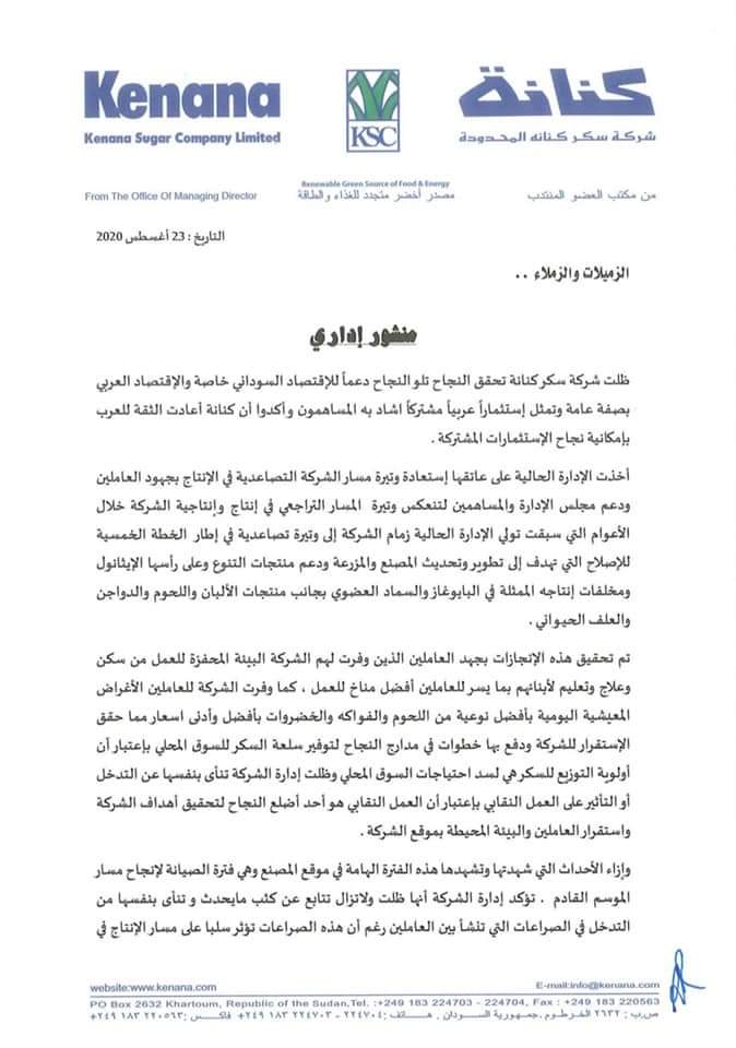 اقالة نائب العضو المنتدب وعودة #مفصولي_كنانة وابعاد الشركات الوسيطة الكيزانية زي الهدف ،ترقية الخدمات