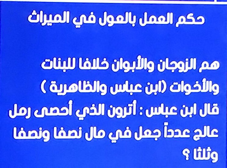 ماهو العول..ان اسهم اصحاب الانصبة اكتر من التركة.لو حسبنا الانصبة نجدها مثلا ١٣٠٪ او اكثر.كيف التصرف. مثال:متوفاةوتركت زوج وام واخت في عهدعمر فقال للزوج النصف والاخت الشقيقة النصف والام الثلث..كيف يتم التقسيم والاسهم واحدوثلث. واجتمع الصحابةللبحث عن حل