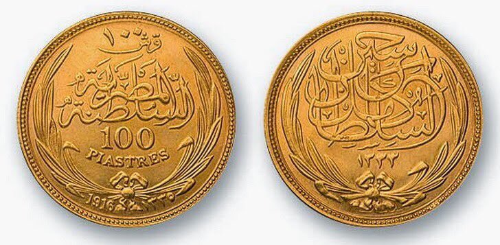 ٨-لأول مرة فى القاهرة بتاريخ 3 إبريل عام 1899 وهناك مصادر أشارت أنها أصدرت يوم 5 يناير عام 1899 عن البنك الأهلى المصرى الذى تأسس بتاريخ 25 يونيو عام 1898 وأنها صدرت فى عهد الخديوى "عباس حلمى الثانى بن محمد توفيق بن إسماعيل بن محمد على" الذى عاش فى الفترة من 14 يوليو عام 1874 حتى