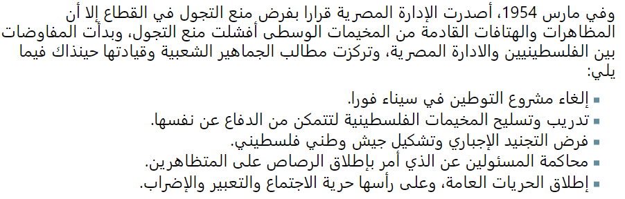 لاحقاً في مارس 54: أصدرت الادارة المصرية بغزة بياناً للتهدئة يزعم إلغاء مشروع التوطين. -- اتضح في يوليو 55 عدم صحته