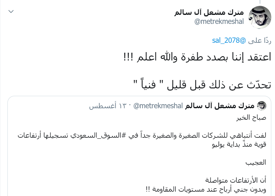 سأتتبع سهم #المصافي على سبيل المثال ومنهُ أستنتج تحركات القطاع