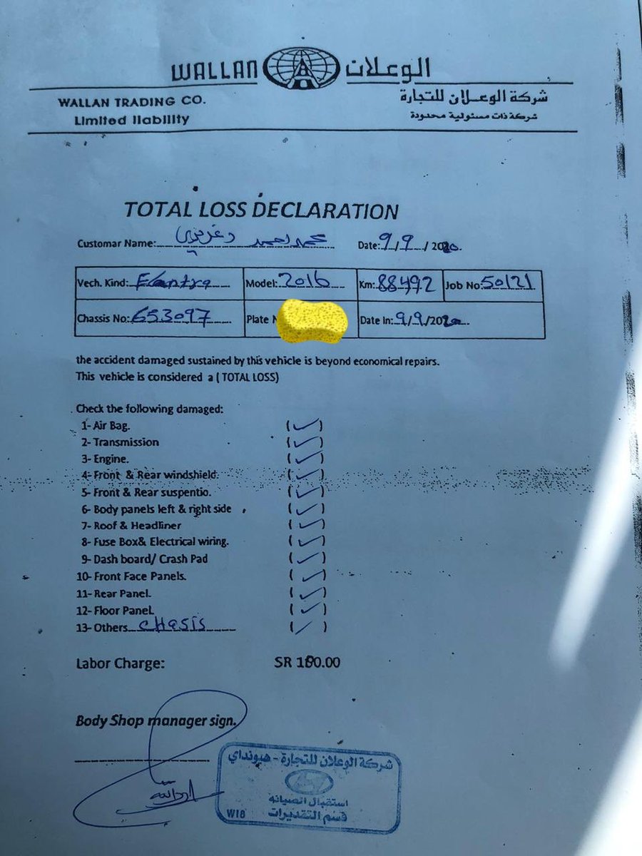 وارسلولي خطاب التوجيه لشركة الوعلان هونداي الي بمخرج 18