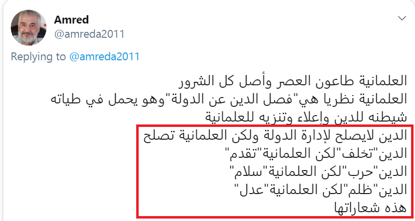 الدين"تخلف"لكن العلمانية"تقدم"