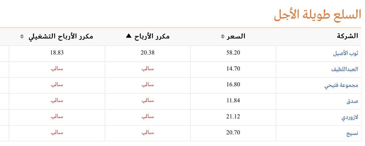 سوف نستعرض اولا افضل الشركات بناء على مكررات الارباح