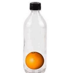 البرتقالة الكبيرة داخل زجاجة العصير الصغيرة، اخذ يحاول ان يخرجها من الزجاجة بكل الطرق الممكنة ولكن دون جدوى .