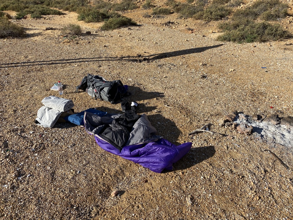 بعد ساعتين، وقعت الخيمة علي وأنا نايم. في البداية، توقعت أنه هجوم من الحمير البرية المنتشرة حولي، والله لا يوريكم كيف قمت مثل المصروع. لما طلعت برة، ما لقيت الحمير، لكن اكتشفت إني ما نصبت الخيمة بشكل صحيح بسبب الأرضية الصخرية. طبعا، الرياح تعصف ودرجة الحرارة حول الـ ٥ مئوية.