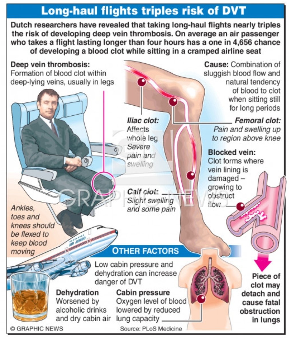 1.إذا كنت مسافرا لمدة طويلة ، يجب أن تتحرك في الطائرة وتكثر من شرب السوائل.