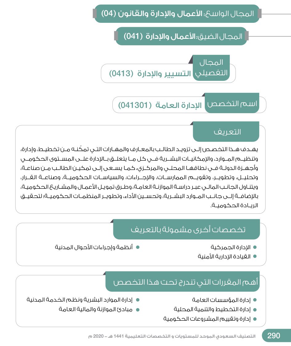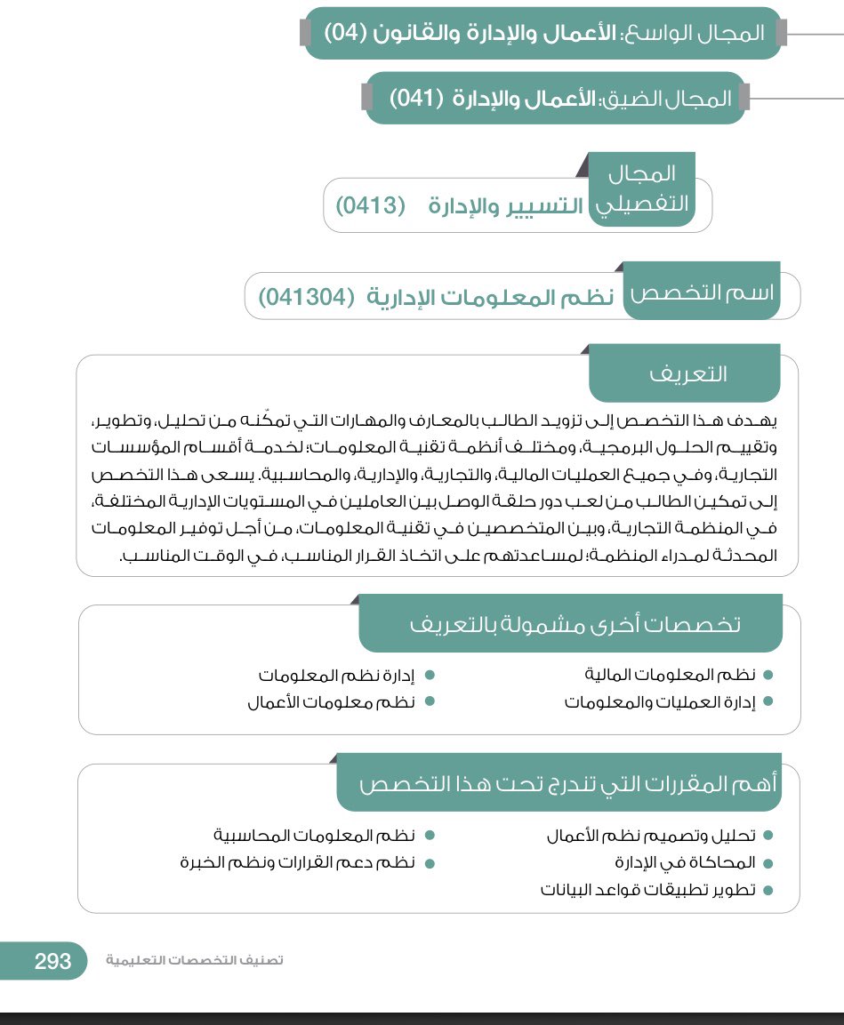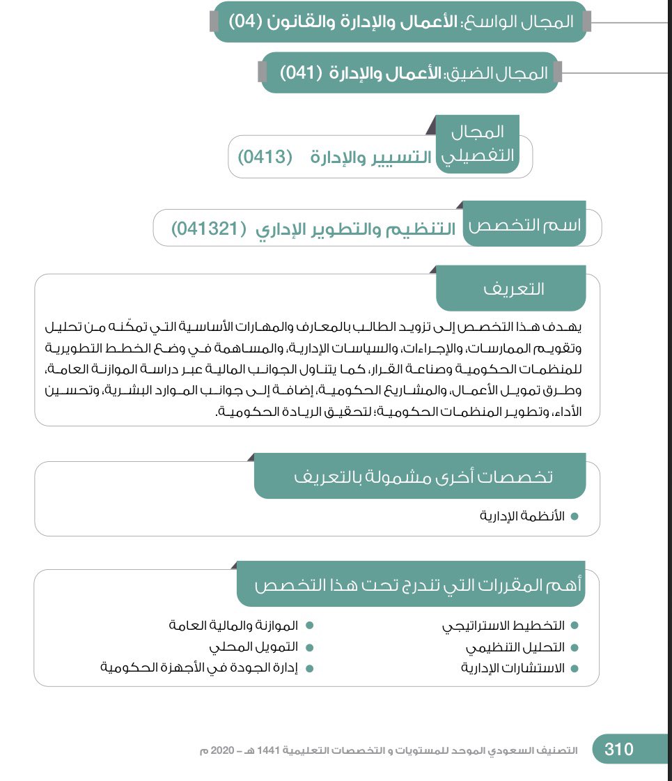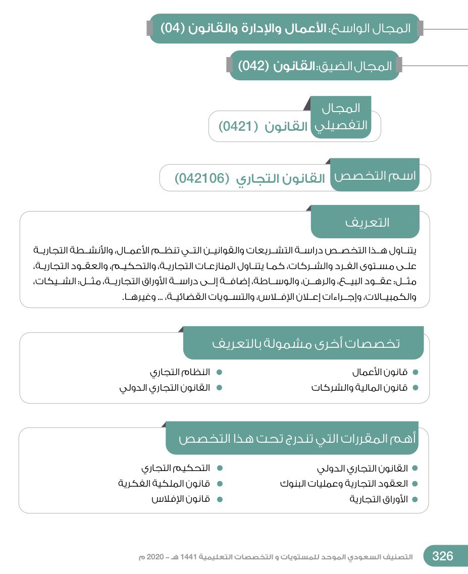 حيث صنفت تخصصات ال #علوم_إدارية والقانون كالتالي: