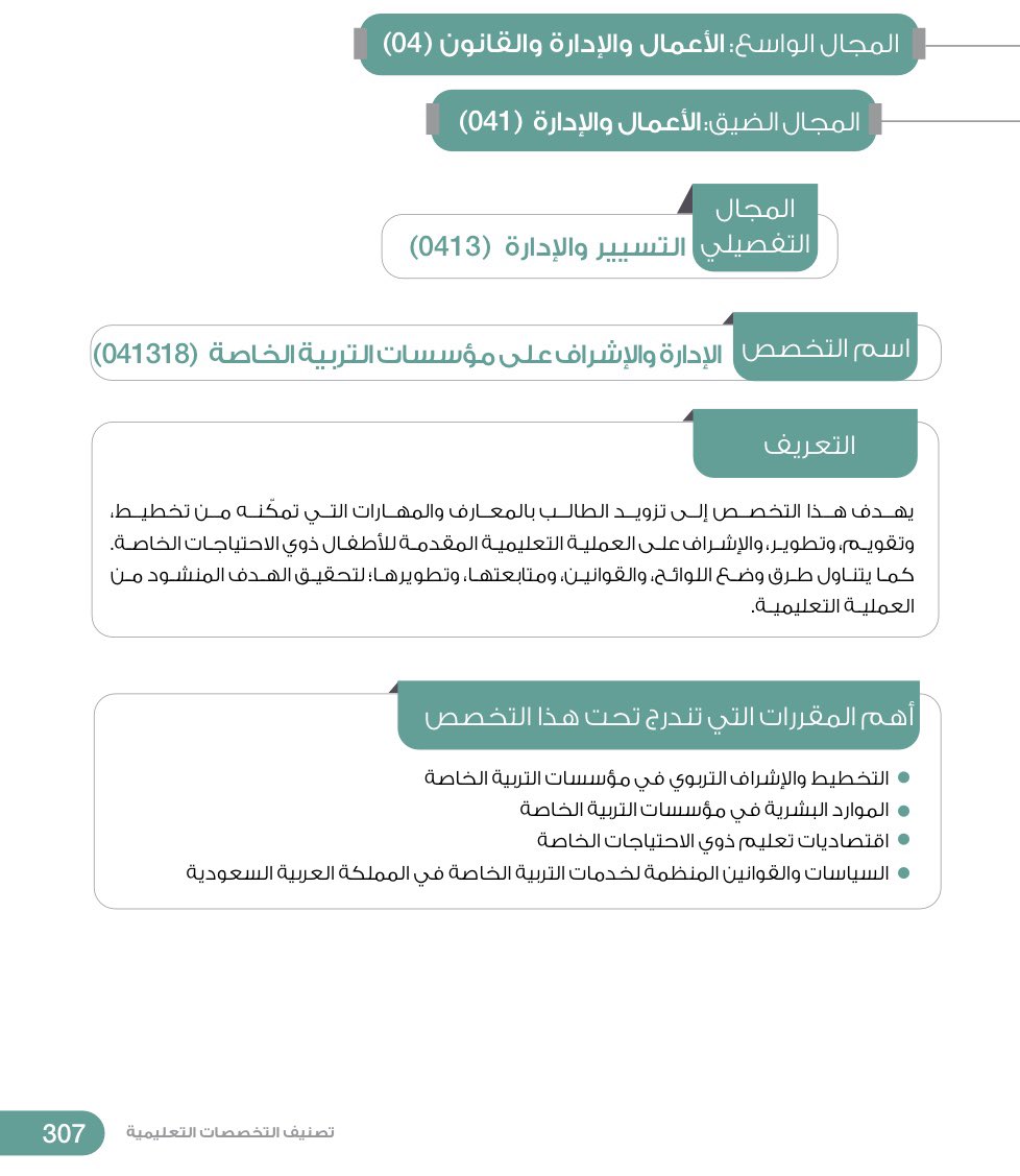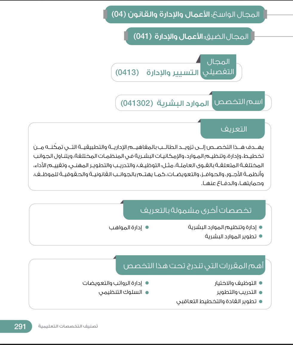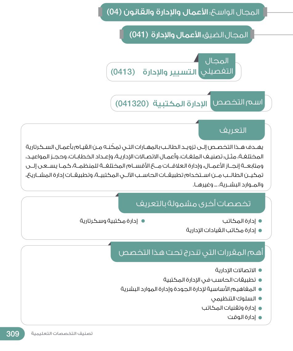 حيث صنفت تخصصات ال #علوم_إدارية والقانون كالتالي: