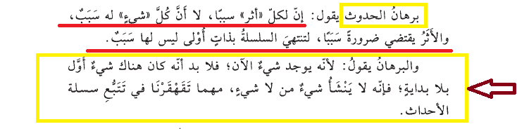 اولا:لم يقل أحد من المؤمنين بالله ان"لكل شيء خالقا"،ولا يمكن أن يقع ذلك في أذهانهم ولا أن يصدر من أفواههم،اذ ان برهان الحدوث لم يقم الا لنفي هذه الدعوى،فهو برهان قام ليثبت أن سلسلة الأسباب والاشياء المتتابعة لا بد أن تكون لها بداية أولى."شاهد الصورة المرفقة"
