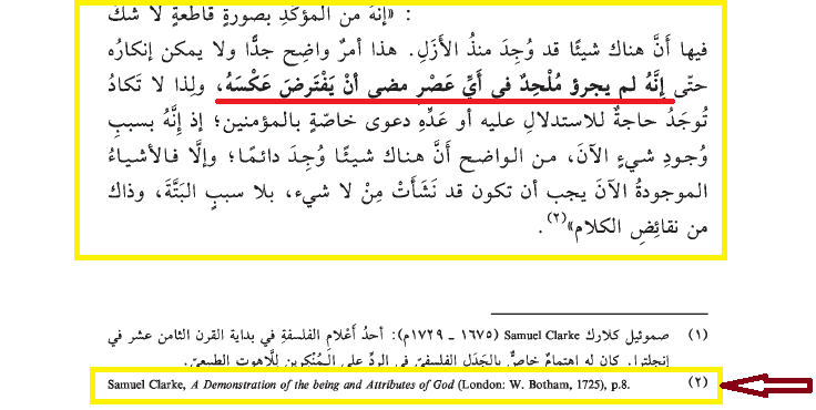 (3/10)ثانيا:الملاحدة يستنكرون معقولية وجود اله لا بداية له رغم ان الملاحدة أمنوا طول تاريخهم قبل القرن العشرين أن الكون أزلي،لعلمهم انه لا بد أن يوجد شيء لا مبتدا له زمنيا.وقد كانوا يسلمون لذلك دون جدل،حتى ان الفيلسوف(صموئيل كلارك)قال في مؤلف له سنة1705:"شاهد الصورة المرفقة