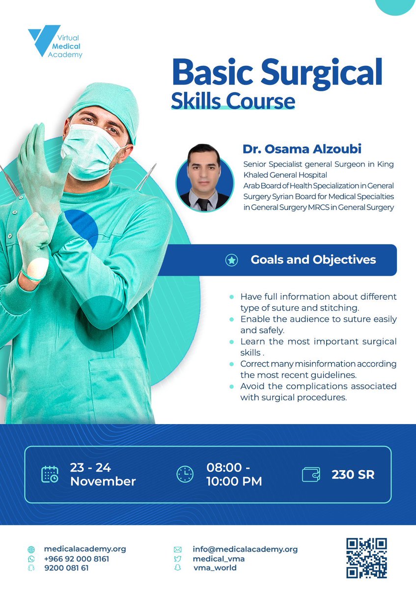 لايفوتكم التسجيل بكورس مهارات الجراحة الأساسية Basic Suturing skills يقام في #الرياض منتصف سبتمبر القادم 🩻